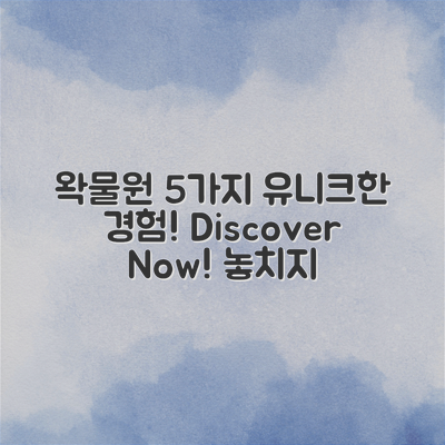 왁물원에서의 이색 경험을 소개해드릴게요! 다양한 체험 프로그램을 통해 특별한 추억을 만들어보세요.