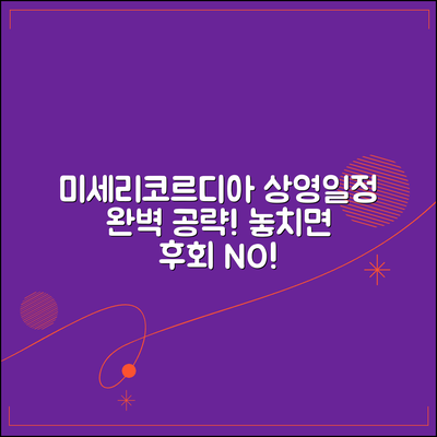 미세리코르디아의 상영일정은 정말 놓쳐서는 안 될 중요한 정보입니다. 이 영화는 다양한 매력을 가진 작품으로, 관람 시기를 놓치면 후회할지도 모릅니다. 아래의 일정표를 통해 정확한 상영 시간을 확인하고, 재미있는 시간을 계획해 보세요!