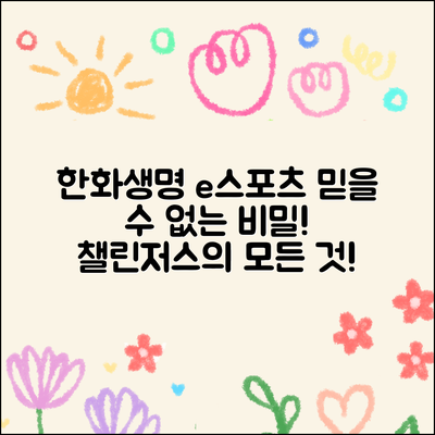 한화생명e스포츠 챌린저스는 2020년 11월 19일에 창단된 리그 오브 레전드 프로 팀으로, 한화생명e스포츠의 2군 선수로 구성되어 있습니다. 팀은 단순히 실력을 키우는 데 그치지 않고, 도전과 성장을 통해 e스포츠의 새로운 역사를 써 내려가고 있습니다.